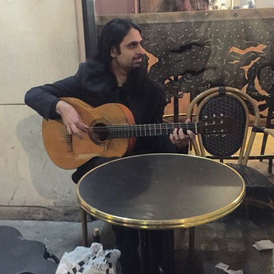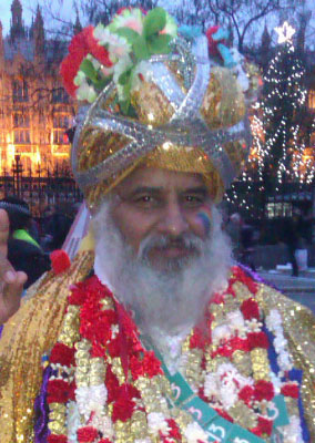 In London, UK—Maitreya guised as an ordinary man playing a guitar (March 18, 2016) and an Indian holy man (November 29, 2015). Manifesting in the world through His mayavirupa (or self-created light vehicle)—Maitreya can create any look He wants (including as a homeless person or member of a minority), so we should not get attached to any particular image of Him. (photos from Share International) |